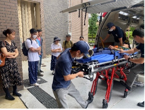 車両見学では、宇治市には救急車が5台しかないとお聞きし、皆さんびっくりされていました。「通報をうけてから何分で救急車が到着するのか」「年に何回出動するのか」等、気になったことを沢山質問され、私たち協会員も良い勉強になりました。